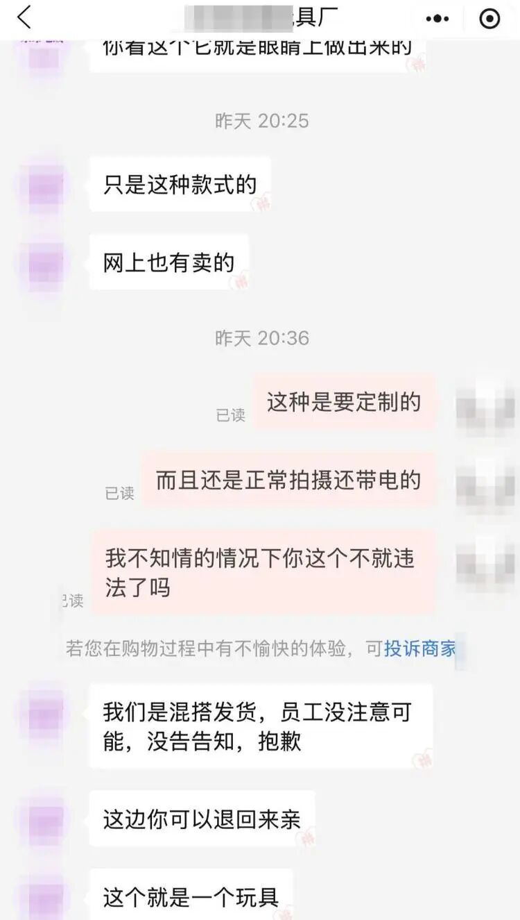 当事人与玩偶售卖商家沟通截图。图片源自网友