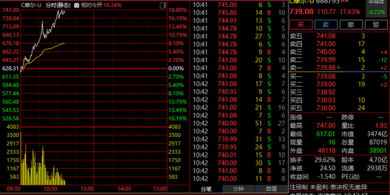 个股方面,盘中涨逾17%,股价突破700元/股关口。摩尔线程发布消息称,12月19日至20日,摩尔线程首届MUSA开发者大会将拉开帷幕。摩尔线程创始人、董事长兼CEO张建中将首次系统阐述以MUSA为核心的全栈发展战略与未来愿景,并发布新一代GPU架构等。