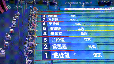 11月15日,全运会女子200米蛙泳决赛中,上海运动员唐钱婷以2分24秒60的成绩斩获银牌。江苏队吕沁遥获得金牌。