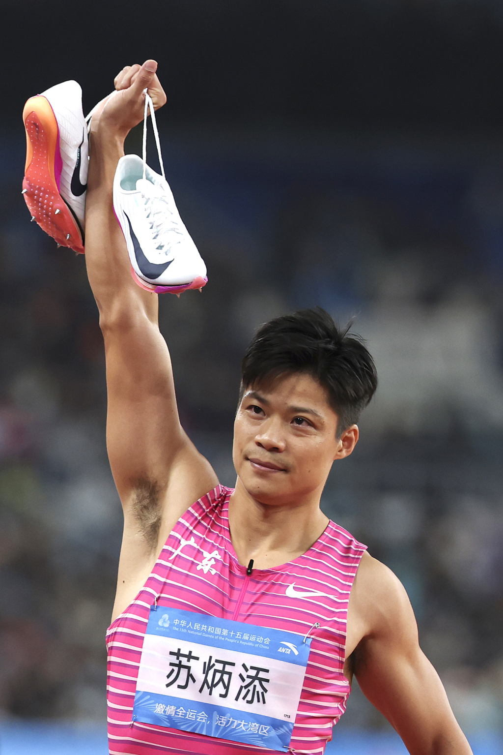 镜头二:2025年11月20日晚,十五运会田径项目男子4100米接力决赛,广东队以38秒71,最终名列第四,遗憾未能站上领奖台。赛后,苏炳添挂靴谢幕。