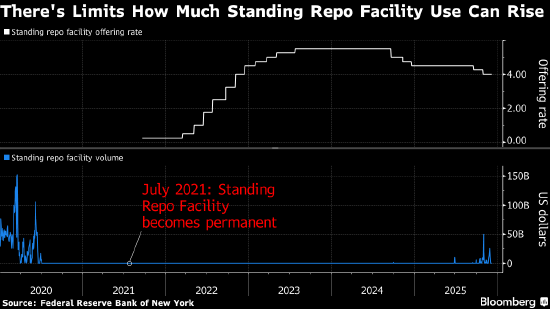 Granet指出,10月末市场参与者动用的美联储常设回购便利(SRF)达到创纪录的504亿美元,显示资金贷方与借方难以找到对手方。