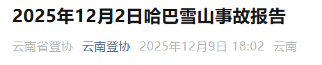 原标题:《一男子违规进入哈巴雪山遇难!云南省登协发布事故报告》