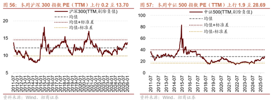 本周整体A股估值水平上行。截至1月9日收盘,万得全A指数PE(TTM)为18.15,处于历史估值水平(10年以来)的74.9%分位数。创业板指PE(TTM)上行1.5至39.29,处于历史估值水平的38.0%分位数。代表大盘股的PE(TTM)上行0.2至13.70,处于78.7%分位数。代表中小盘股的中证500指数PE(TTM)上行1.9至28.69,处于历史估值水平的60.1%分位数。